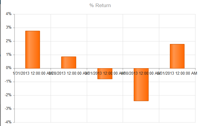 Html.Kendo().Chart(Model.Results) .Name("chartPCT") .Title("% Return") .Legend(legend => legend.Visible(false)) .Series(series => series.Column(model => model.Metrics.Return) .Name(Model.ColumnTitle) .Labels(false) ) .ValueAxis(axis => axis.Numeric() .Labels(labels => labels.Format("{0}%"))) .CategoryAxis(axis => axis .Categories(model => model.Observation) .Labels(labels => { labels.Format("MMM"); })) .Render();