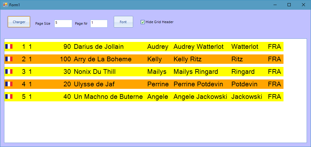 How can I define the grid back color - the area in White in the attached screen shot of my test application ?