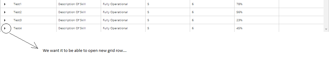 We would like to find a way to implement a Grid. When we click row, we want to be able to show subrow. But  Is there any way or best practice to do that?