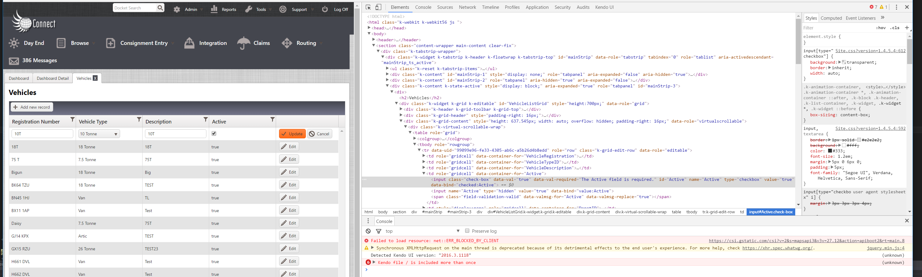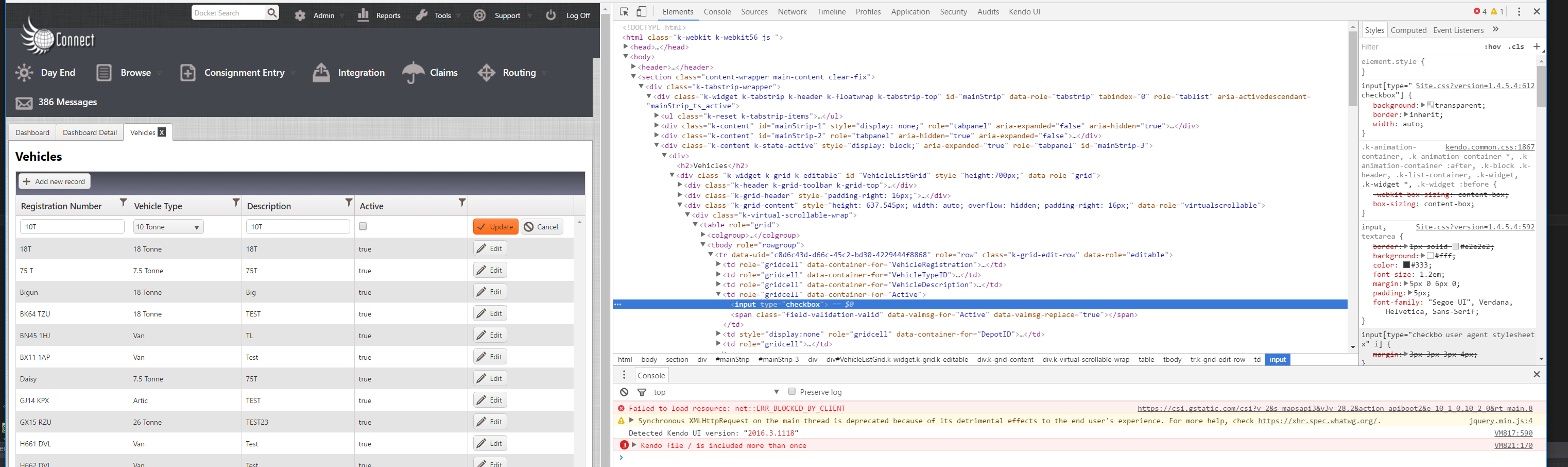 3. If you inspect the check box, there are clear differences when it is working (on our web servers) to when it is not (run from Visual Studio on any of the developers' PCs). Images attached. We don't have the tools to work out why they are different - but maybe Kendo developers might know what has happened?