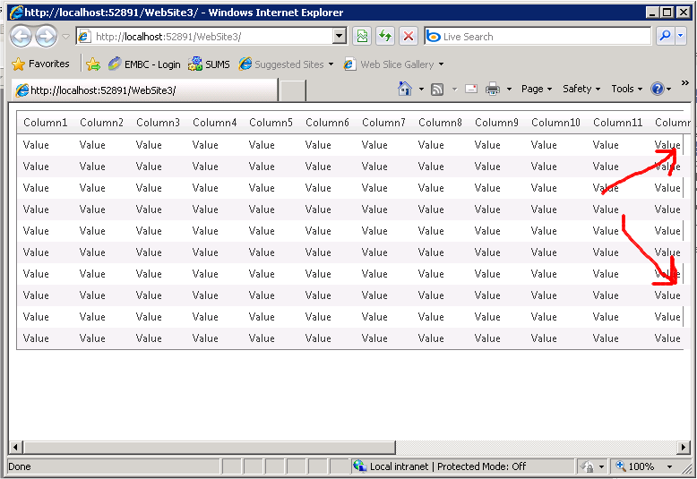 We are experiencing a problem with the RadGrid. This happens when the width of the grid is larger than the browser window. The right border does not appear at the right edge of the grid but rather at the right side of the browser window.