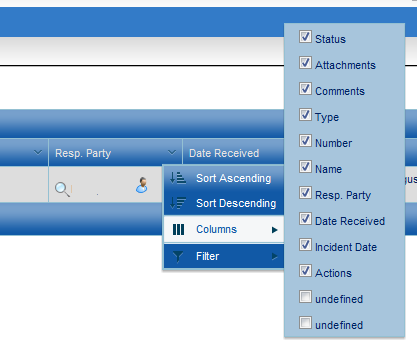 In my columnMenu, I am getting 2 additional columns with the label of undefined.