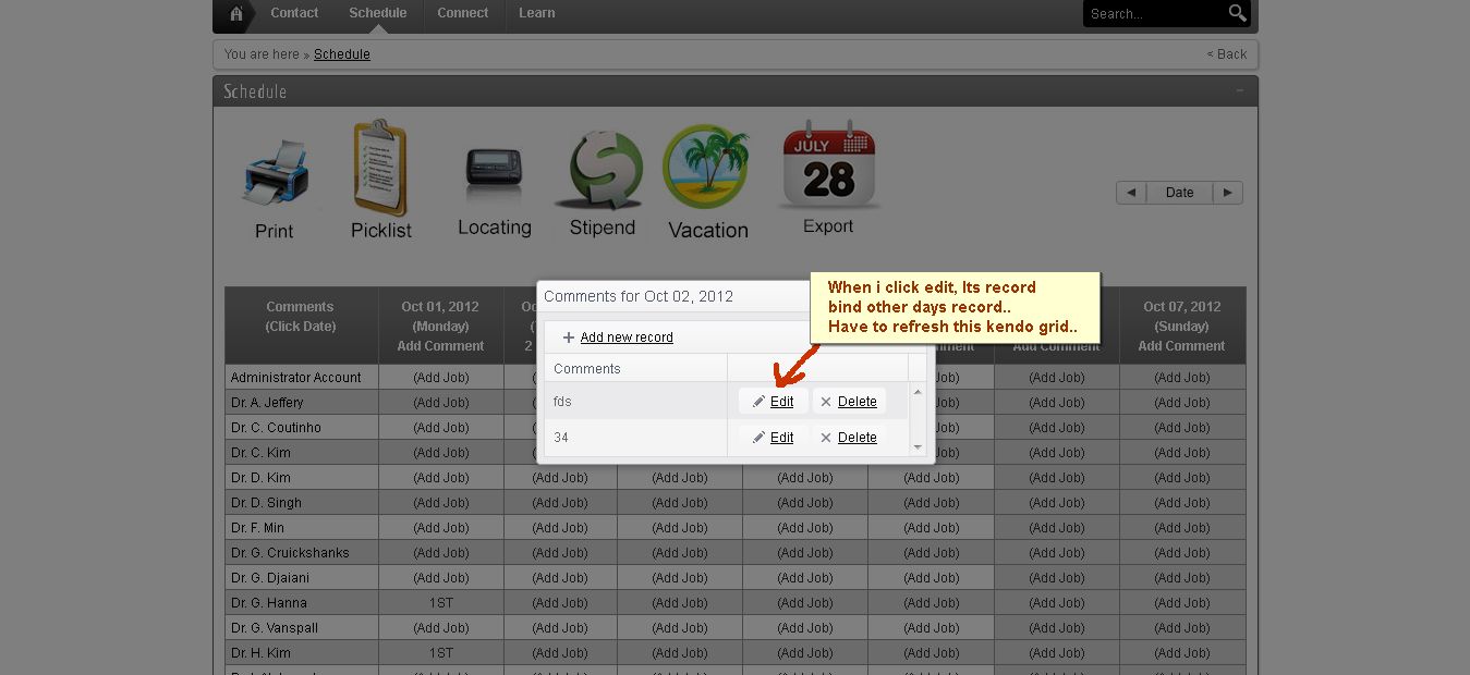 I am having issue when i click edit button, the previous records are coming grid need to refresh.