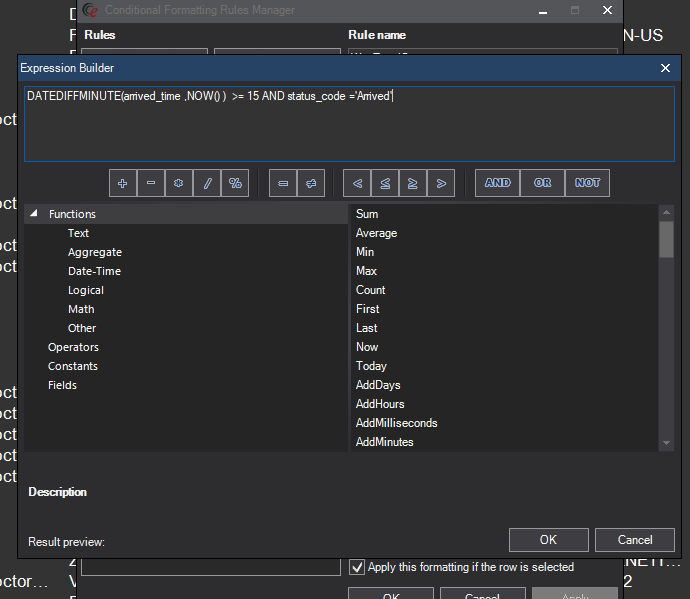 End goal is if more than 15 minutes has passed since arrived_time then change RowBackColor