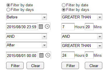 I'd like to know, if this kind of filter customization (a standard UI with an extra filter type switcher, days and hours textbox ) is possible? Is there an api giving me the chance to convert the numbers to a date before submitting for server side filtering?