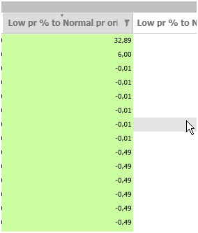 It seems well in the list, that the numbers are in ascending order, but more than one value which is in the table is missing from it (eg. ’-0,49’ or ’6,00’in the upper picture), and more than one value is duplicated (eg. ’-8,51’).