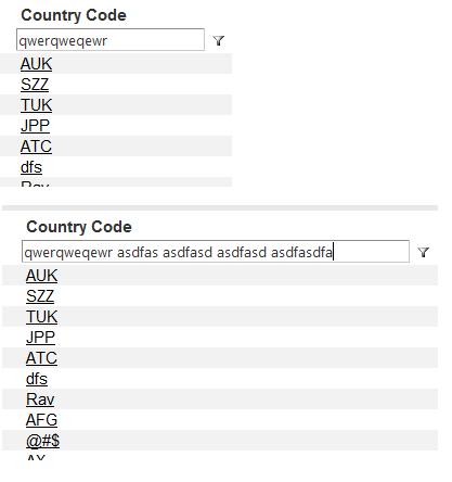 The Filter textbox is getting expanded if the entered text as per the text entered. how do i fix this.