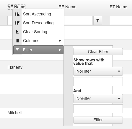 Also looked at the demo projects for excel type filtering, but wasn't sure of the style sheet setting differences. Finally, I tried checking the header context popup for the filter, but I didn't know if a CSS style tag needed to be overridden in the page. The DOM seemed to show the internal iframe within the div having a width size of around 170px.