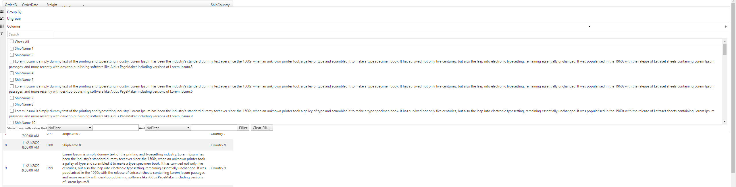 I'm trying to get the RadGrid control to display the FilterType correctly. The attached image shows the current results where the filter dialog width is too small.
