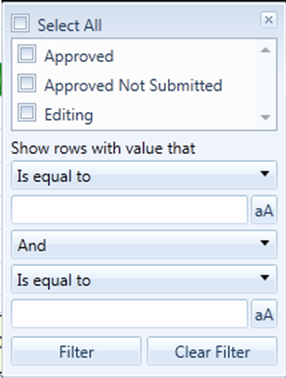 I need grid filter controls which look like the Telerik WPF or Silverlight filters (see attached image). The ASP.NET AJAX suite has FilterTemplates. The Telerik .NET MVC controls do not, and I can't find anything like it in the KendoUI. Is there a way to get custom filters like the one in the image? I specifically need this when the filter icon is clicked, not somewhere else on the page.
