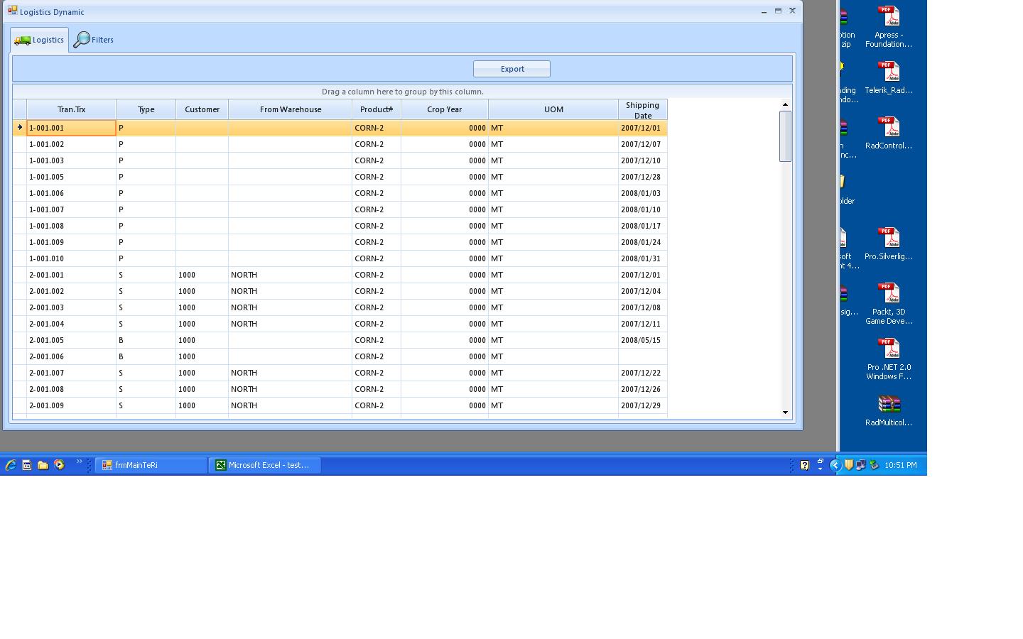 I am attaching the screenshots of original grid and then the export to each format as explained above...