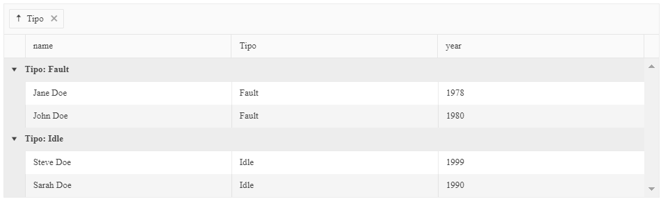 We are trying grouping by column type object , for this, we use this code:With this code, the grouping work correctly, but the text appears in header group template it's not we need.