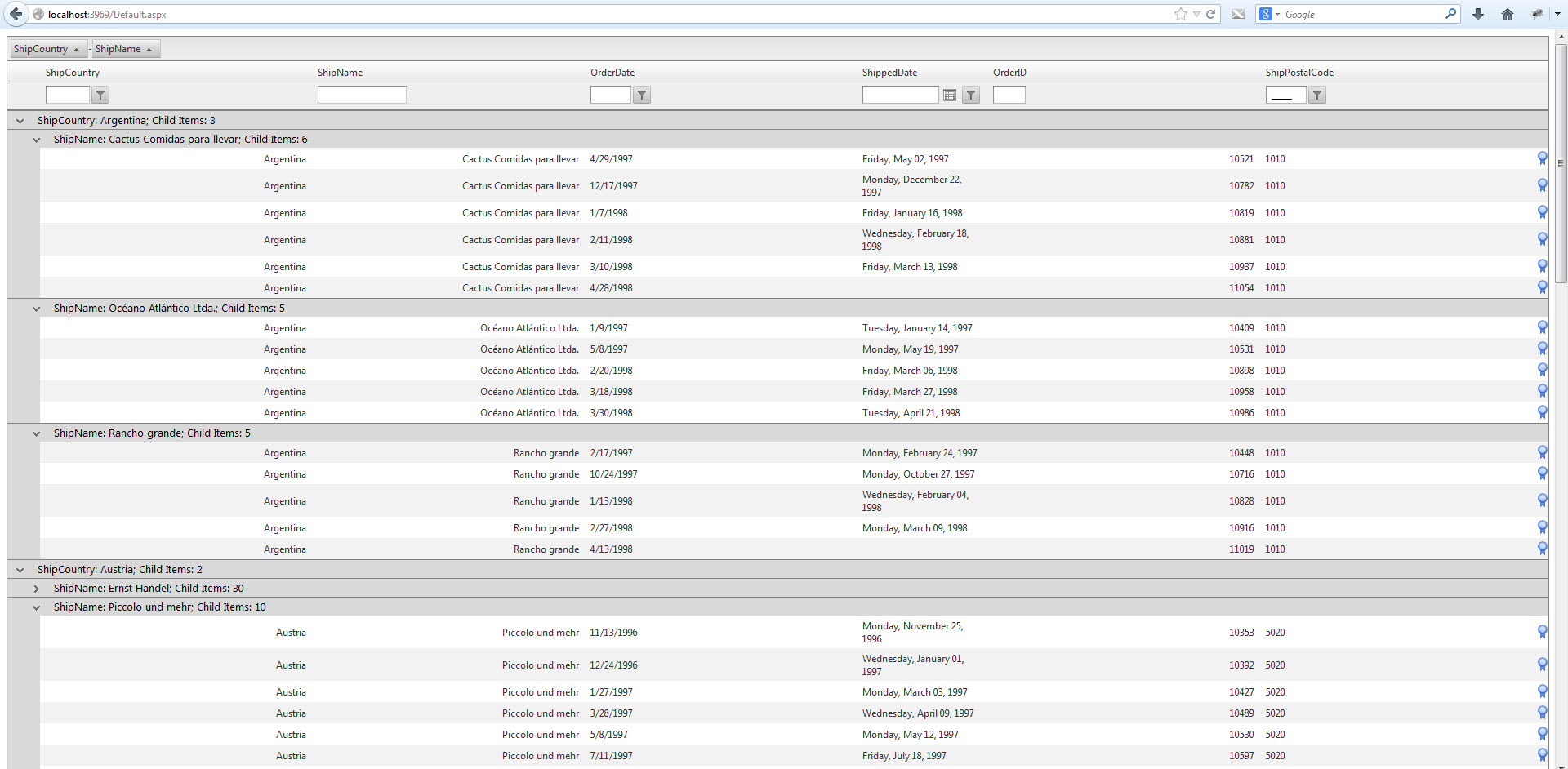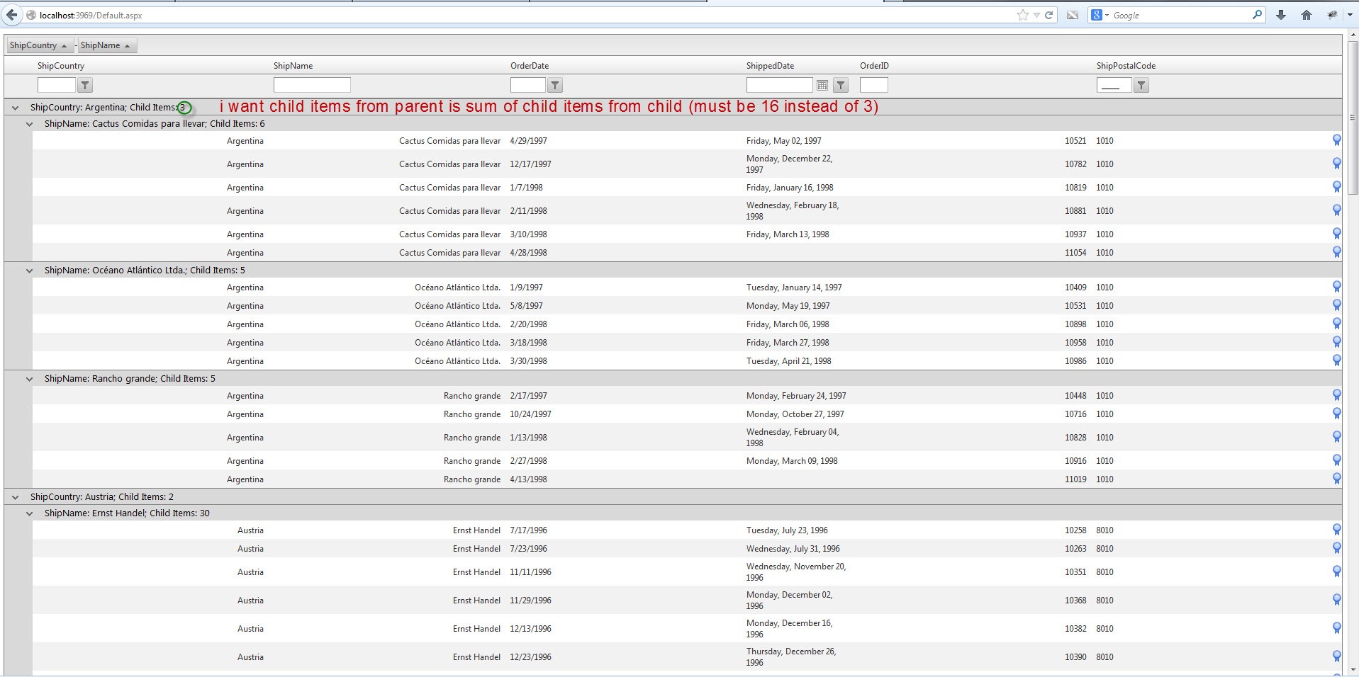 I would like to added code in the ascx file to add addition information about the number of records under the parent row before the user expanded the nested parent rows. It is help to see 0 child records or more child records so they know when to expand.