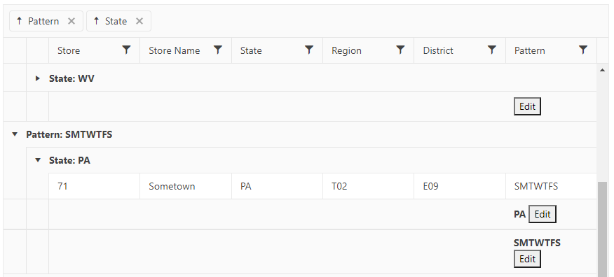 In the example below, it is Pattern and State. Looking at the pattern for SMTWTFS you can see I have a button for both PA and SMTWTFS when I'd like to only have the button show for Pattern (SMTWTFS)