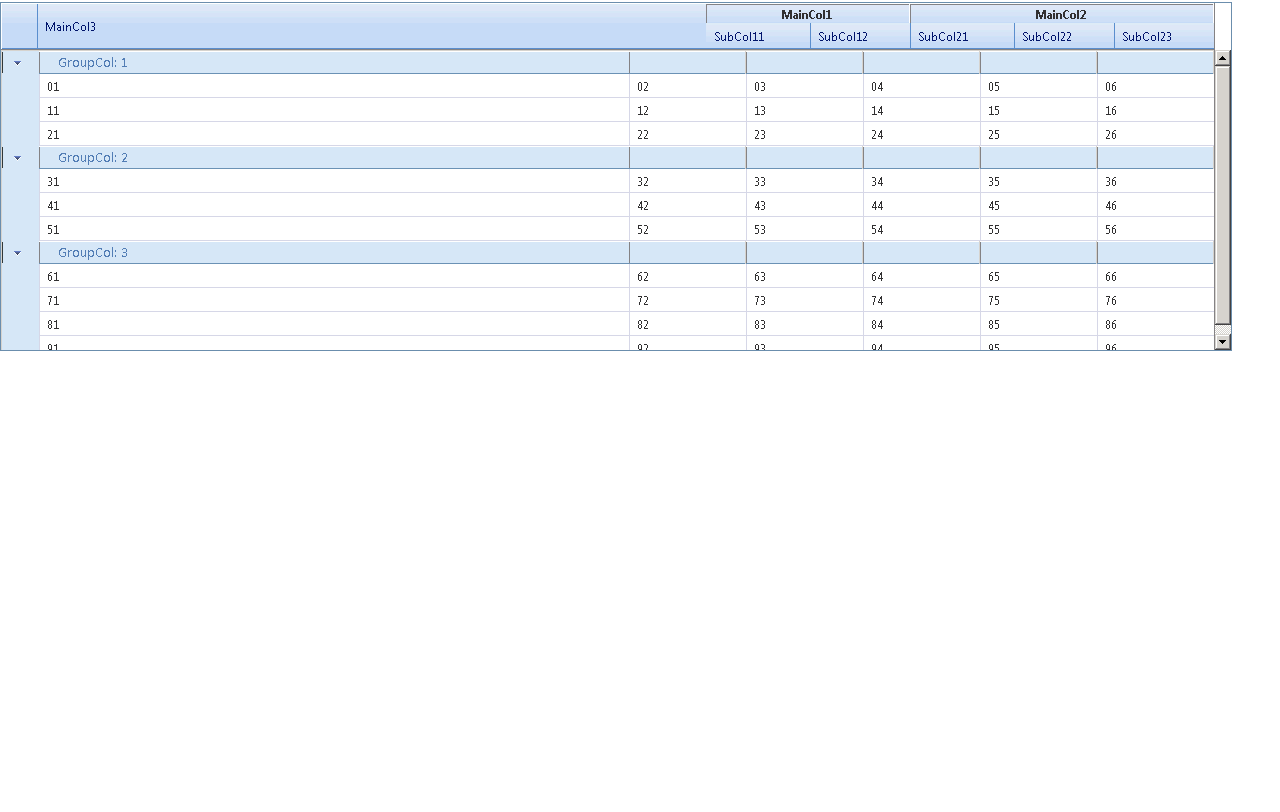 protected void Page_Init(object sender, EventArgs e){ PlaceHolder PlaceHolder1 = new PlaceHolder(); RadGrid RadGrid1 = new RadGrid(); RadGrid1.ID = "RadGrid1"; RadGrid1.Skin = "Office2007"; form1.Controls.Add(PlaceHolder1); form1.Controls.Add(RadGrid1); RadGrid1.MasterTableView.CommandItemDisplay = GridCommandItemDisplay.Top; RadGrid1.PageSize = 15; RadGrid1.ClientSettings.Scrolling.UseStaticHeaders = true; RadGrid1.AllowPaging = true; RadGrid1.AutoGenerateColumns = false; RadGrid1.DataSourceID = "SqlDataSource1"; RadGrid1.MasterTableView.DataKeyNames = new string[] { "OrderID" }; GridBoundColumn boundColumn = new GridBoundColumn(); boundColumn.DataField = "OrderID"; boundColumn.HeaderText = "OrderID"; boundColumn.HeaderStyle.Width = 70; boundColumn.HtmlEncode = false; RadGrid1.MasterTableView.Columns.Add(boundColumn); boundColumn = new GridBoundColumn(); boundColumn.DataField = "ProductID"; boundColumn.HeaderText = "ProductID"; boundColumn.HeaderStyle.Width = 70; boundColumn.HtmlEncode = false; RadGrid1.MasterTableView.Columns.Add(boundColumn); boundColumn = new GridBoundColumn(); boundColumn.DataField = "UnitPrice"; boundColumn.HeaderText = "UnitPrice"; boundColumn.HeaderStyle.Width = 70; boundColumn.HtmlEncode = false; RadGrid1.MasterTableView.Columns.Add(boundColumn); boundColumn = new GridBoundColumn(); boundColumn.DataField = "Quantity"; boundColumn.HeaderText = "Quantity"; boundColumn.HeaderStyle.Width = 70; boundColumn.HtmlEncode = false; RadGrid1.MasterTableView.Columns.Add(boundColumn); GridGroupByExpression exp = new GridGroupByExpression(); GridGroupByField expfield = new GridGroupByField(); expfield = new GridGroupByField(); expfield.FieldName = "OrderID"; expfield.HeaderText = "Order count "; expfield.Aggregate = GridAggregateFunction.Count; exp.SelectFields.Add(expfield); expfield = new GridGroupByField(); expfield.FieldName = "UnitPrice"; exp.GroupByFields.Add(expfield); RadGrid1.MasterTableView.GroupByExpressions.Add(exp);}Thanks,