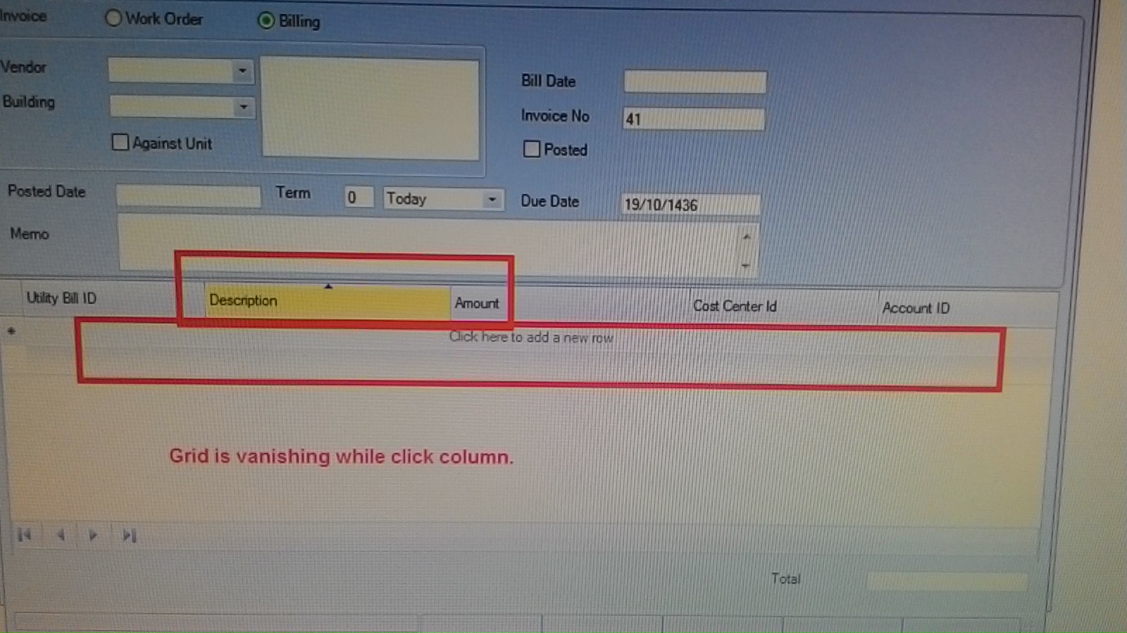 When you click the column header, the grid is being sorted and your data should not disappear. If you still experience this issue, I would kindly ask you to create a small sample project where the issue can be reproduced and get back to me with it, so I can investigate the precise case and help you resolve it.