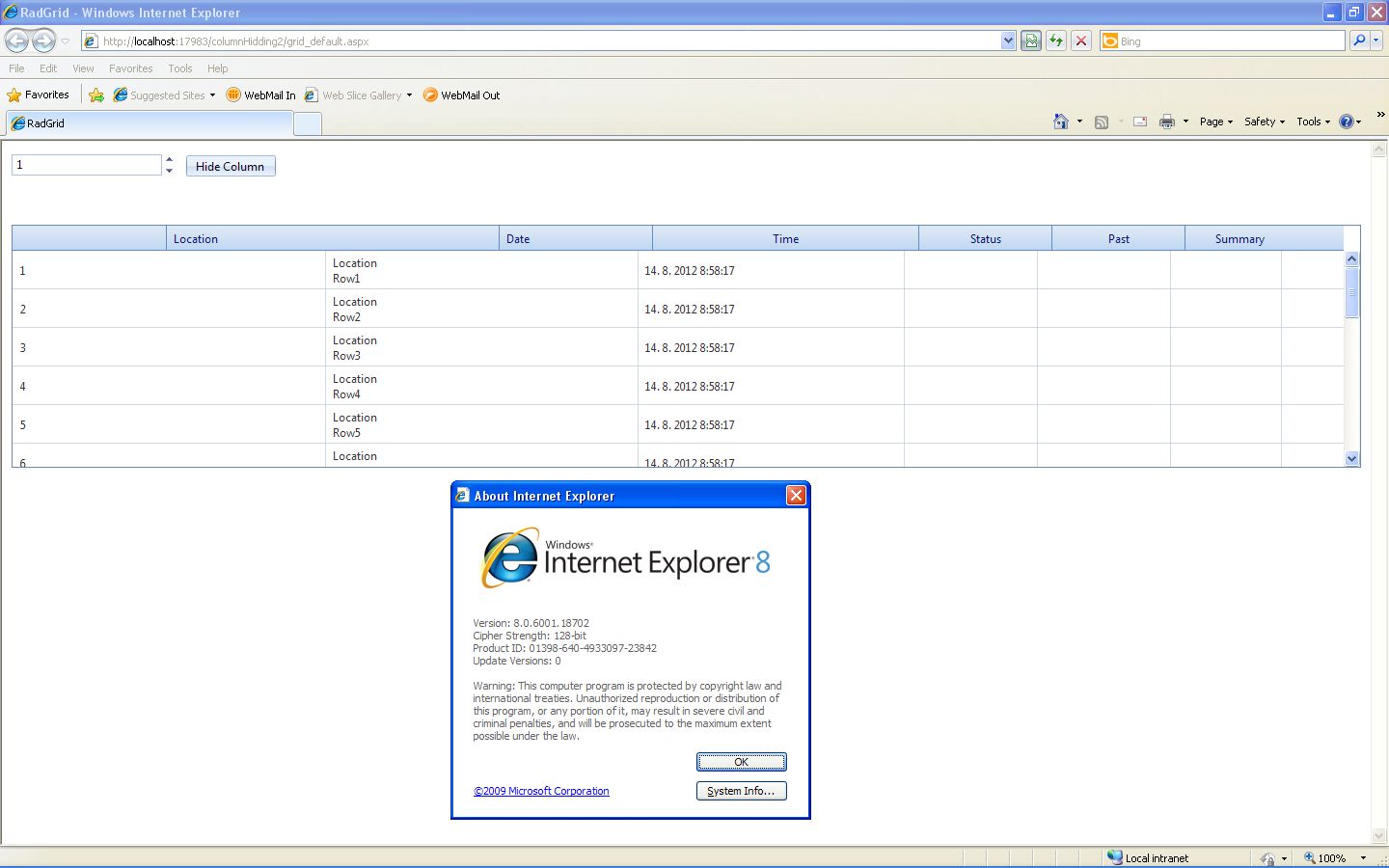 Also, the problem is a specific browser behavior which does not render correctly the hidden columns. Also it is a known problem, but it is difficult to fix the problem without making a breaking change with the previous versions of RadControls. Anyway, our developers are working on it.