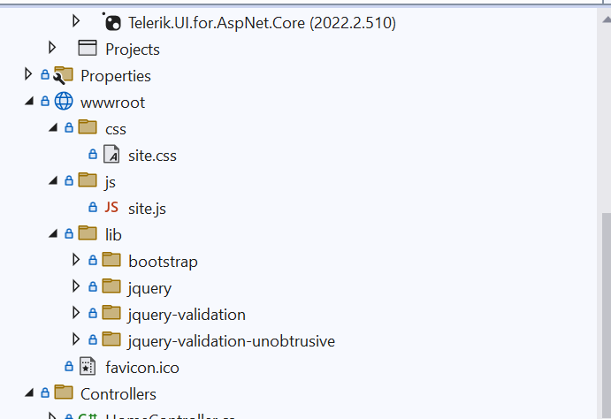 I also noticed following the instruction. it does not tell me to include any css or javascript or any javascript code in script section. so nothing of that natrure is included. Below is the outcome of the nuget. I have no css or other js file from kendo.