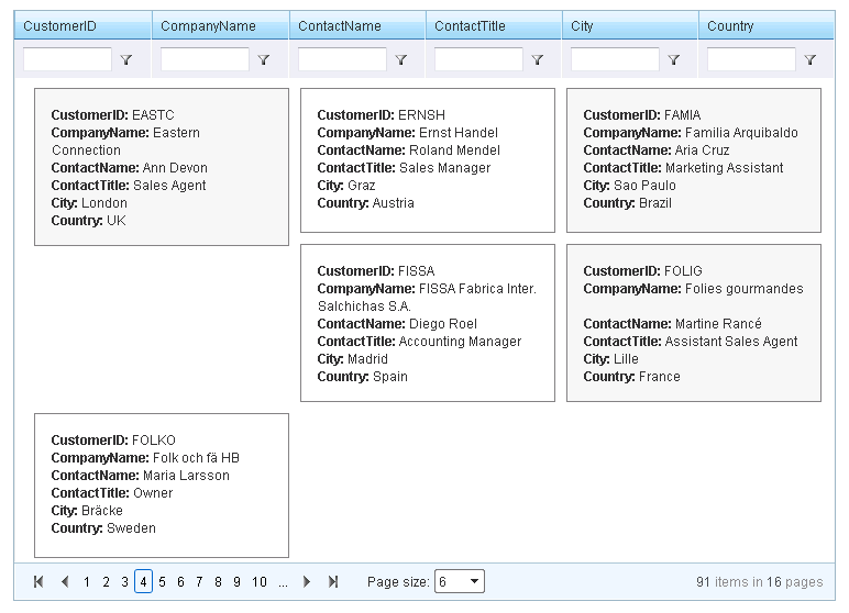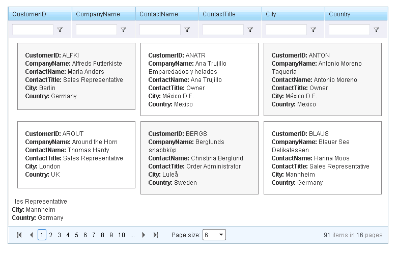 I have a Grid in my application that shows items in a Listview/Datalist like way, as found here: Demo.