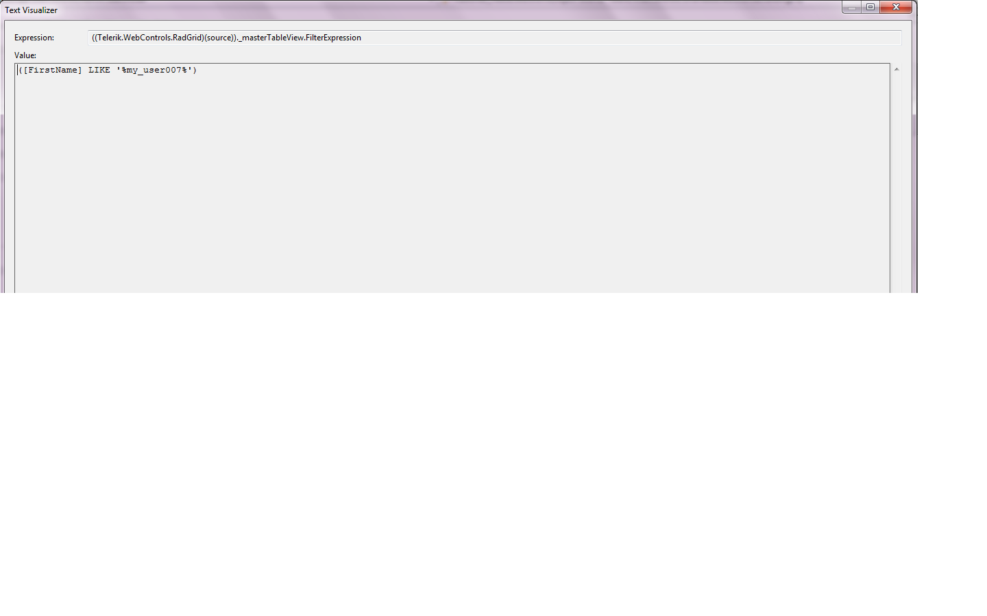 protected void Page_Load(object sender, EventArgs e) { GridFilterFunction.IllegalStrings = new string[]{ " LIKE ", " AND ", " OR ", " NULL ", " IS " }; }Hope this information helps.