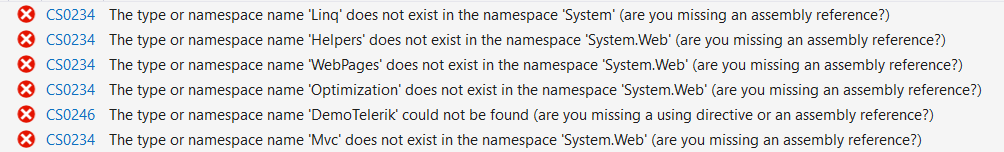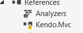 Unfortunately, I am not able to build it. I receive a list with errors and even though I added the Kendo UI dll is still has a working icon: