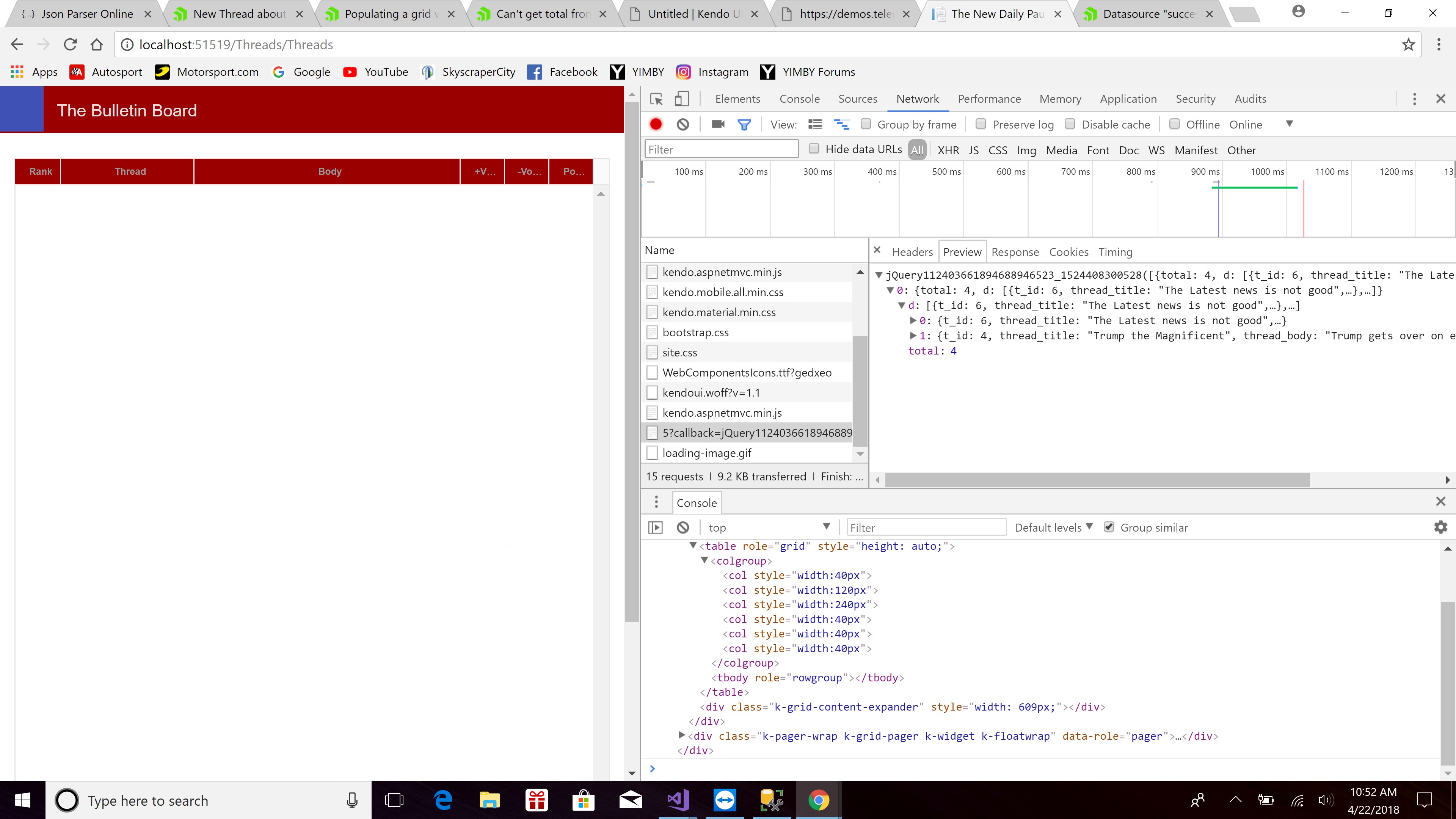 jQuery112403661894688946523_1524408300528([{"total":4,"d":[{"t_id":6,"thread_title":"The Latest news is not good","thread_body":"Here is a long description of the problem and no solution offerred. Here is more typical BB nonsense. Here's a personal story about more nonsense..","thread_created_dt":"2018-03-21T18:08:32.7651816","thread_edited_dt":"2018-03-21T18:08:32.7651816","up_count":0,"down_count":0,"posts_count":3,"posts_last_dt":"2018-04-17T02:21:02.5061225","posts_first_dt":"2018-03-21T18:20:18.1132348","u_id":2,"username":"scdecade","user_created_dt":"2018-01-06T15:52:50.0880940","ranking":1},{"t_id":4,"thread_title":"Lorum ipso lorum","thread_body":"Fets over on everyone.","thread_created_dt":"2018-01-06T16:45:05.1147048","thread_edited_dt":"2018-01-06T17:28:12.0919741","up_count":1,"down_count":1,"posts_count":58,"posts_last_dt":"2018-01-10T15:56:08.7811010","posts_first_dt":"2018-01-06T21:42:54.3239900","u_id":2,"username":"scdecade","user_created_dt":"2018-01-06T15:52:50.0880940","ranking":2}]}])