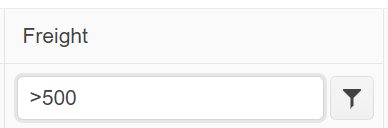 >9000 --> price > 9000 >=9000 --> price >= 9000 <9000 --> price < 9000 =9000 --> price = 9000 9000 --> price like '%9000%' This is not possible with numerictextbox . So, I would like to change the numerictextbox filter to an autocomplete filter with additional coding.