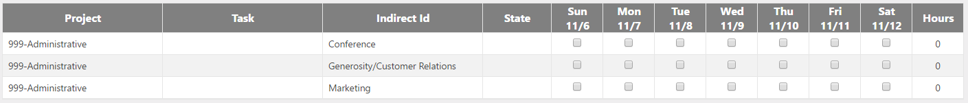 "VALUES (@timesheetID, @weekEnding, @project, @task, @indirectID, @state, @sunday, @monday, @tuesday, @wednesday, @thursday, @friday, @saturday);";
