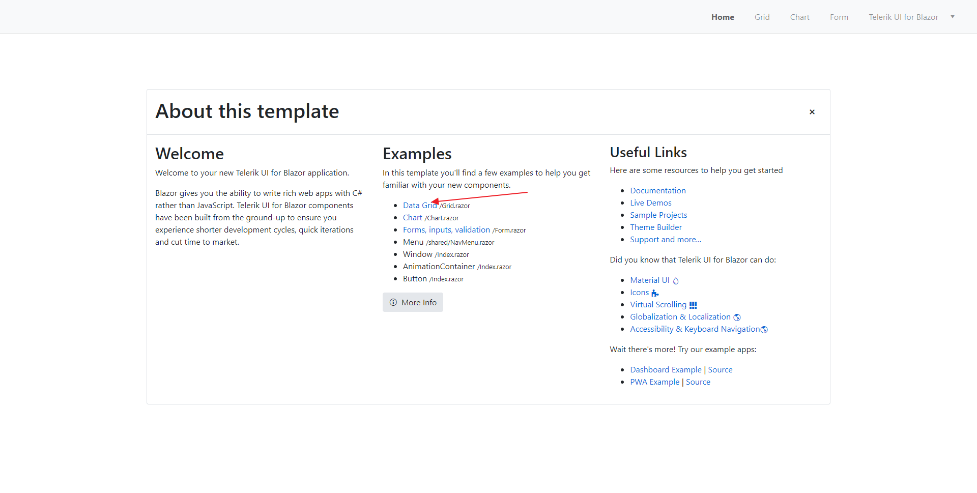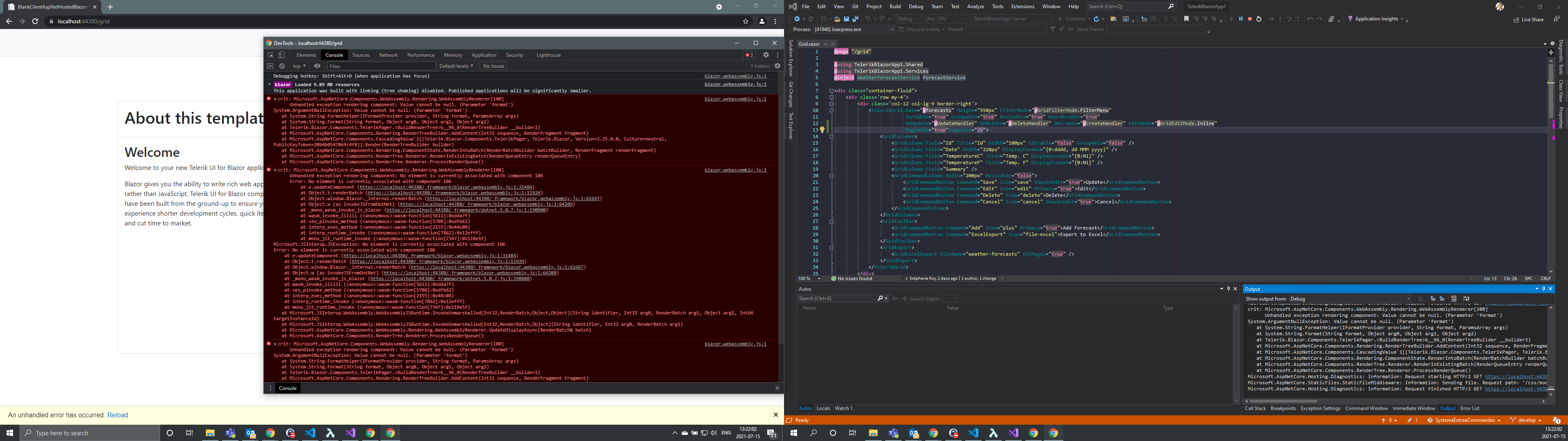 I'm using the Trial 2.25.0 with the Telerik project template. When I try to access the Grid demo page I get the error "Unhandled exception rendering component: Value cannot be null. (Parameter 'format')". I narrowed down the error to the Pageable option. If I don't use it then the page is fine but there's no pagination.
