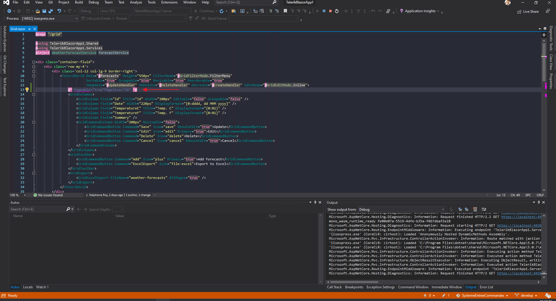 Comparing with https://www.telerik.com/forums/grid-pageable-system-argumentnullexception-value-cannot-be-null, I noticed that I added resources files for a small test with the Form page. Creating another projet with the Telerik template without adding resources files is fine, the grid page has the pagination.