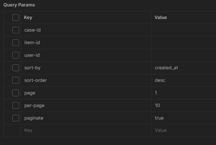 And with the request on page change, on filter, or on sort, I would want to get the page, filter, sort data, and put them into query parameters to pass to the endpoint. I have attached an example image of query params I have from Postman below.