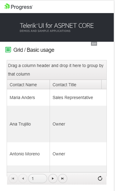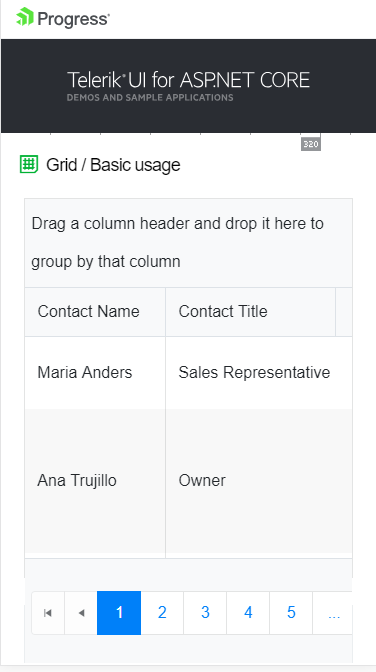I am using Kendo UI for ASP.NET Core along with Bootstrap 4 and running into an issue with the responsive layouts of the grid on mobile devices. Upon further investigation, it appears to be a bug as I can reproduce it on the Kendo demo site.