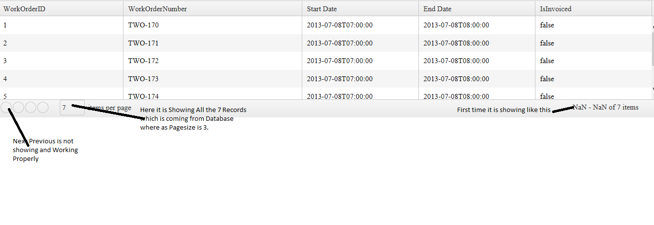 I'm using Remote Binding and it is coming in json format,what ever Total records are coming from Database it is binding all at once first time but when selecting other page sizes then it is working fine,I have attached the sample page of code please check it and let me know where I'm going wrong.