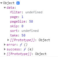 For do that in the DataSource.Transport.Ready(options) function I need to retrieve the PageNumber and PageSize value but the options.data.pageSize and options.data.page result undefined
