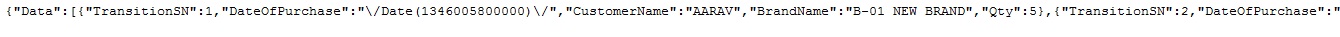 @(Html.Kendo().Grid(Model.CustomerOrderDetails) .Name("CustomerOrder") .Columns(columns => { columns.Bound(p => p.TransitionSN).Width(70); columns.Bound(p => p.DateOfPurchase).Width(140); columns.Bound(p => p.CustomerName).Width(140); columns.Bound(p => p.BrandName).Width(140); columns.Bound(p => p.Qty).Width(50); columns.Command(command => { command.Edit(); command.Destroy(); }).Width(150); } ) .ToolBar(toolbar => toolbar.Create()) .Editable(editable => editable.Mode(GridEditMode.PopUp)) .Pageable() .Sortable() .Scrollable() .DataSource(dataSource => dataSource .Ajax() .Events(events => events.Error("error_handler")) .Model(model => model.Id(p => p.TransitionSN)) .Read(read => read.Action("NewCustomer_Read", "CustomerOrder")) .Create(update => update.Action("NewCustomer_Create", "CustomerOrder")) .Update(update => update.Action("NewCustomer_Create", "CustomerOrder")) .Destroy(update => update.Action("NewCustomer_Create", "CustomerOrder"))) )------------------------------------------------------------------------------