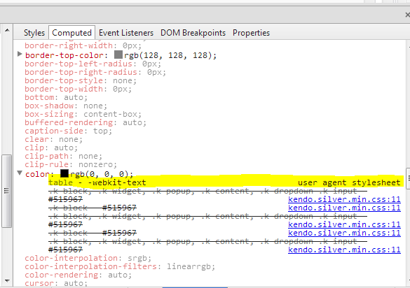 Browser developer tools shows me computed styles and there is black color for grid text. Where is that coming from?