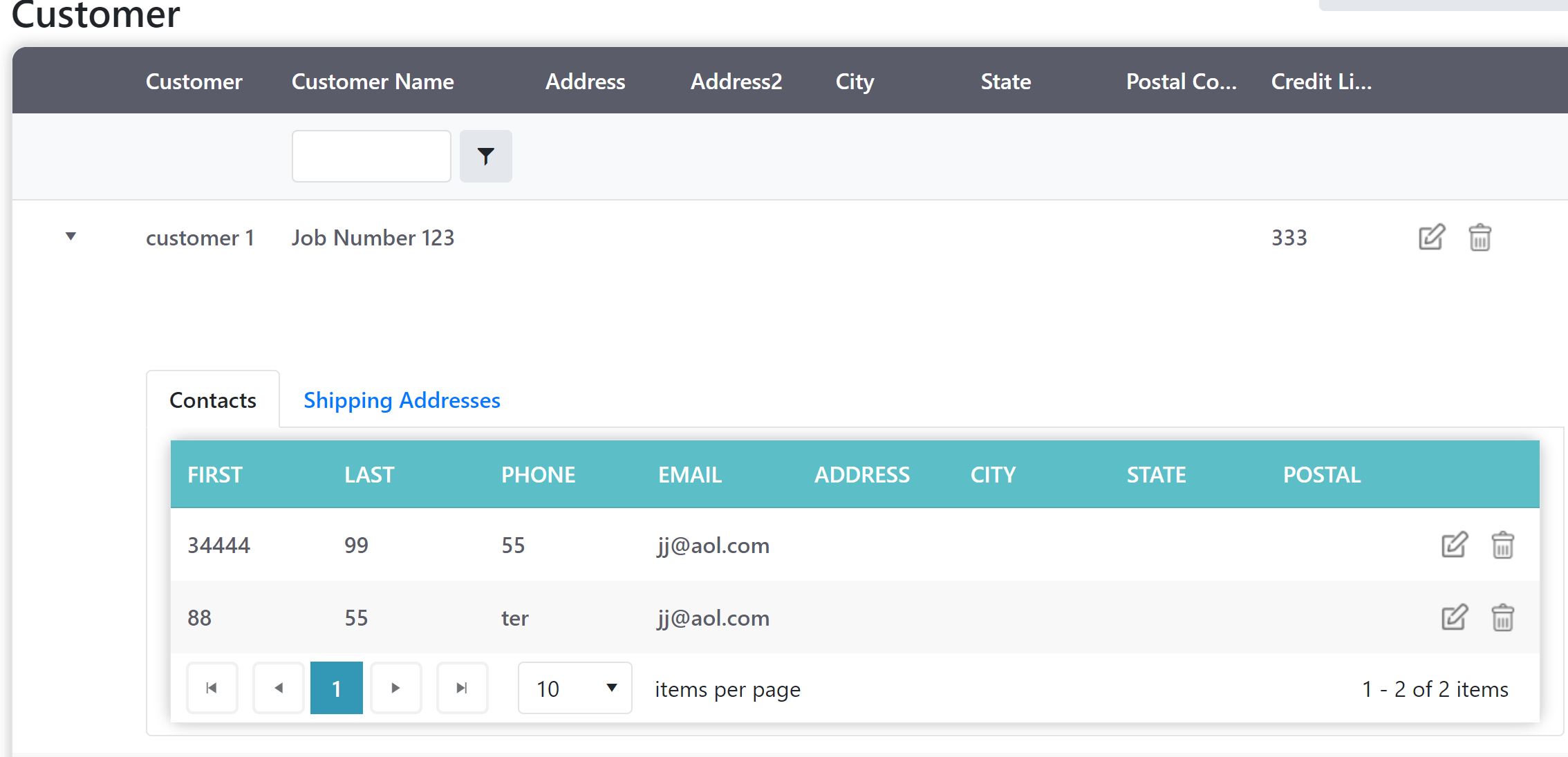 I examined the provided code and there are only 2 items added to the TabStrip, one for the Contacts grid and one for the Shipping Addresses grid.