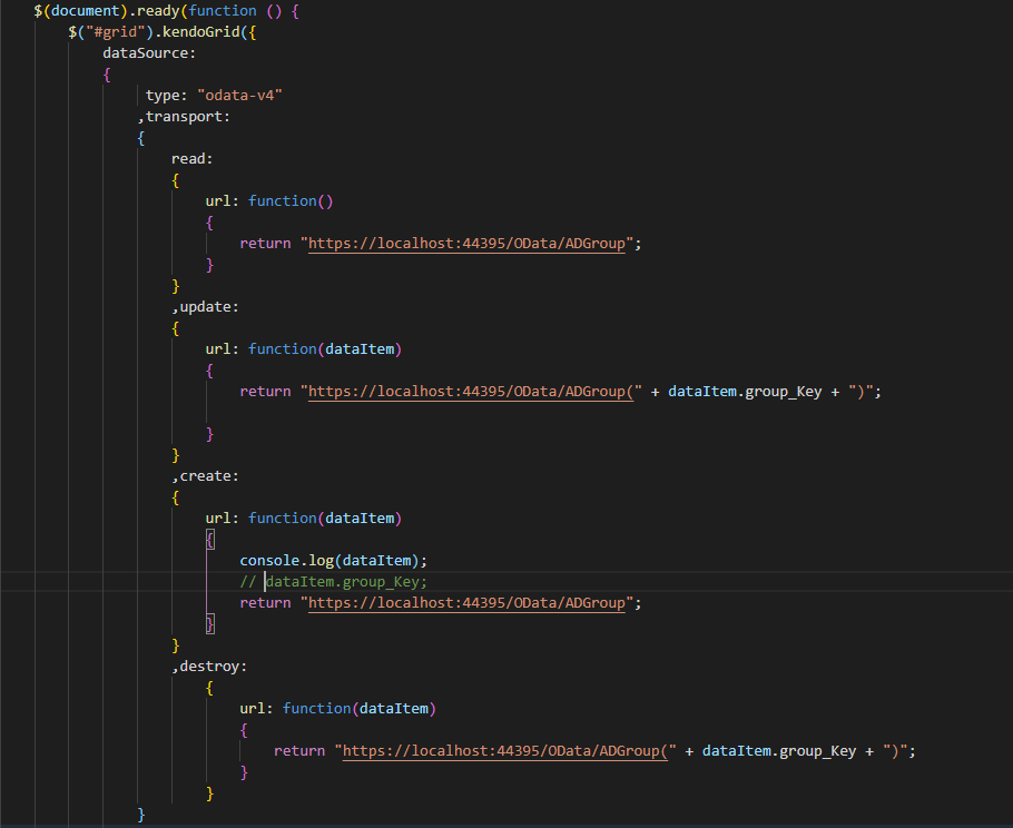 I have an OData 4 API in Dot Net to which I am making calls on a grid to read(GET), update(PUT), create(POST) and destroy (DELETE).