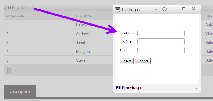When I clicked on Add New Record link button to bring up the Edit form, I could not find the code the show the Edit form (please see attachment for the screenshot)