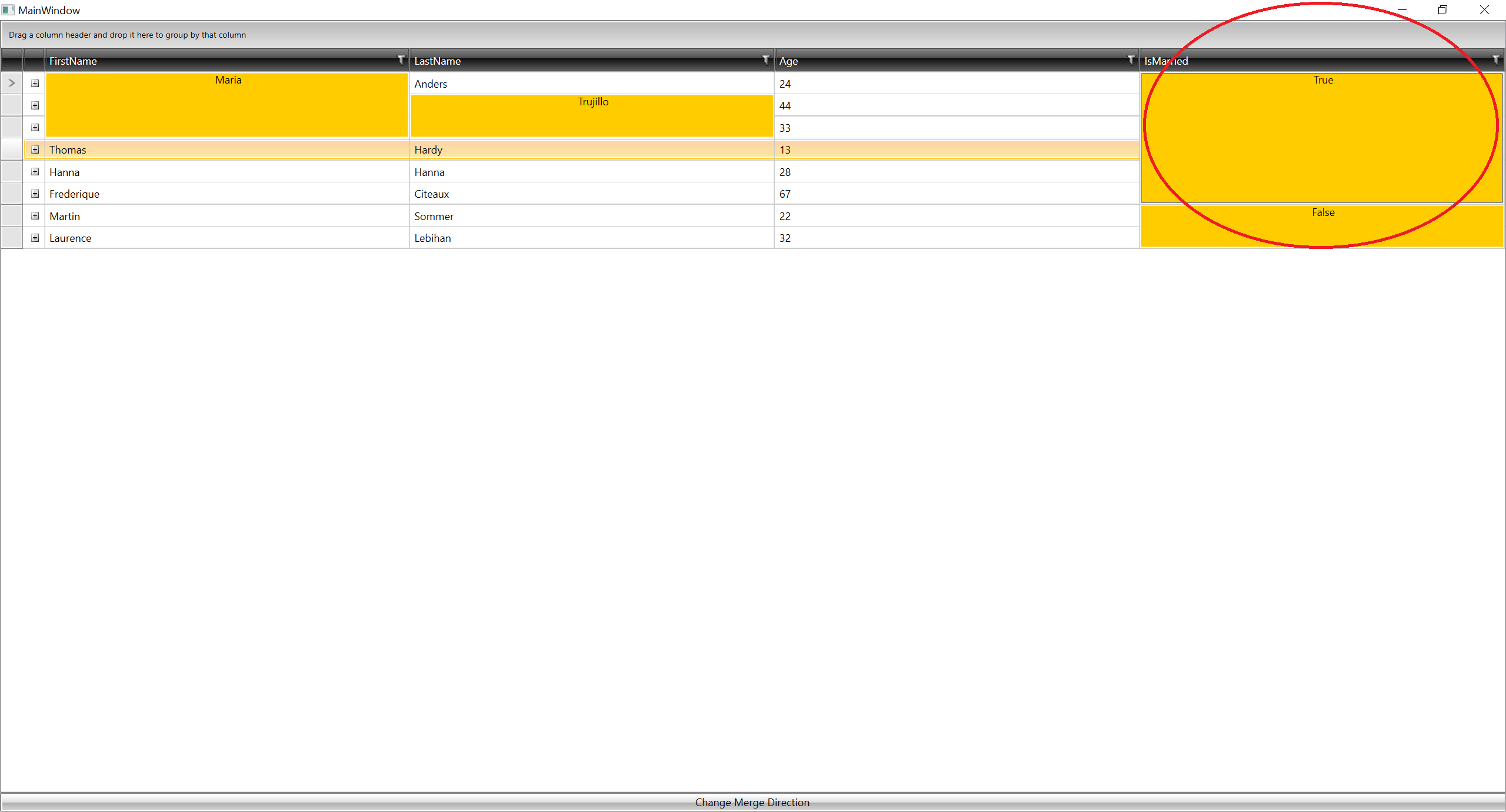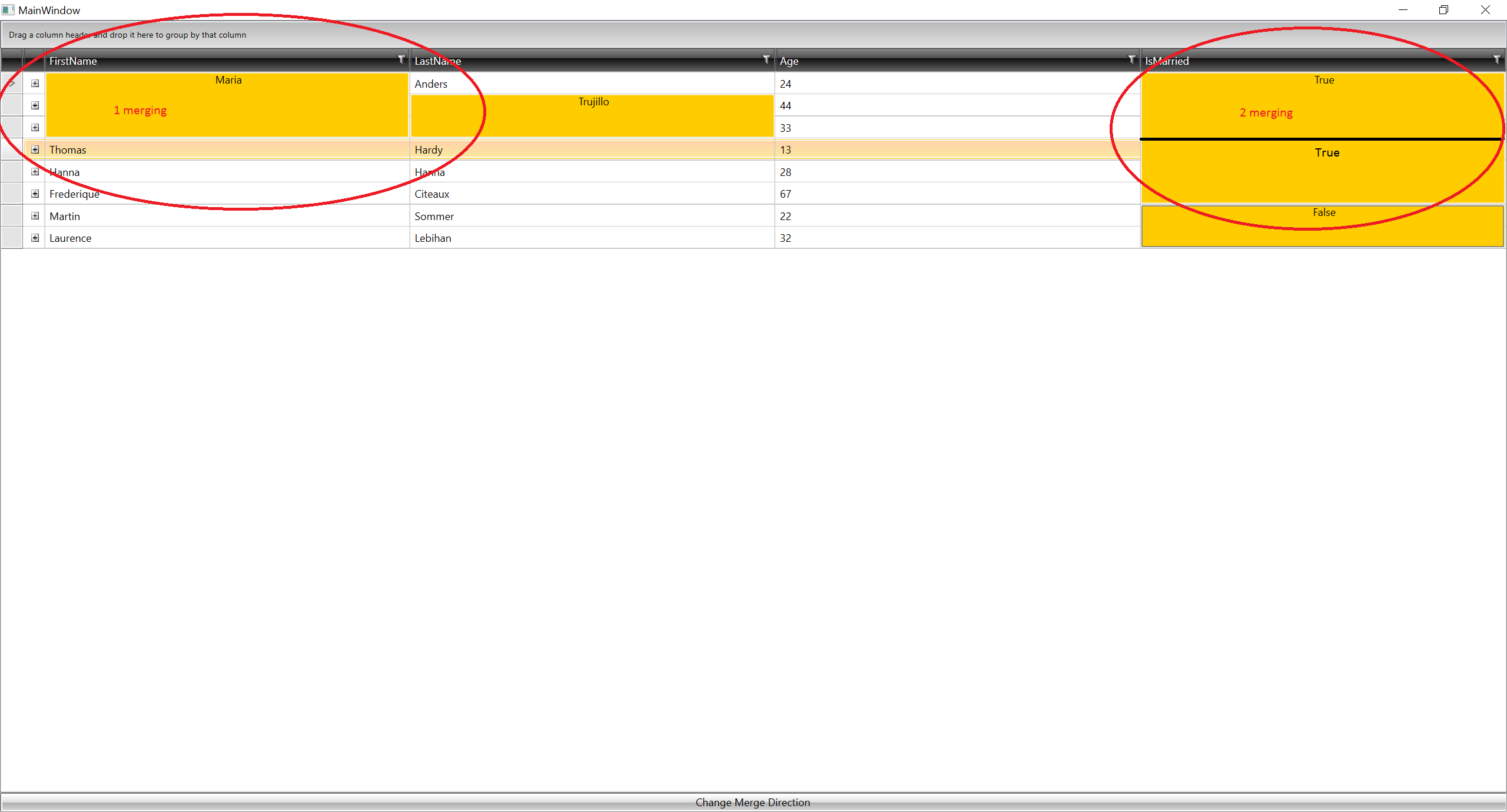 We want to do merging by multiple rows on equals. For example we want to do merge the same values in first column then, in this range we want to merge by third column. Something like GroupBy("Column1").ThenBy("Column2").