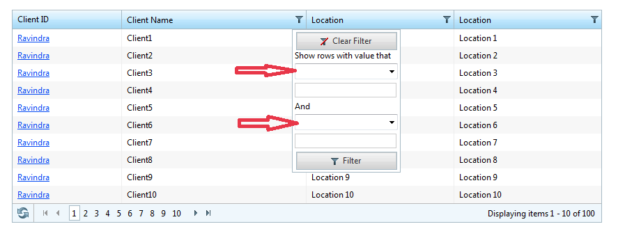 When i enable the filter option in the grid, the default filter dropdown has no operators populated in it. below is the code that i have been using and attached a sample screenshot of how the default filter is looking like