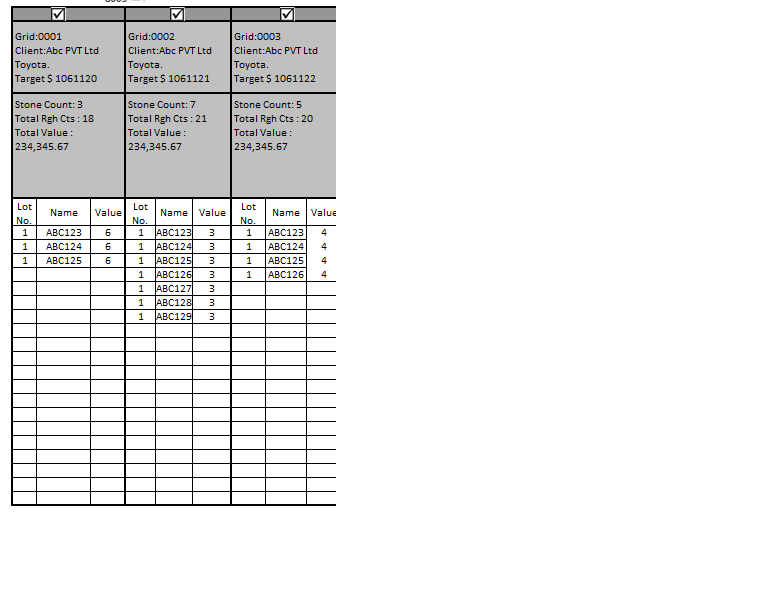 For the sample i have shown the three grids, it can be n number of grids dynamically added and all the grid rows are editable.