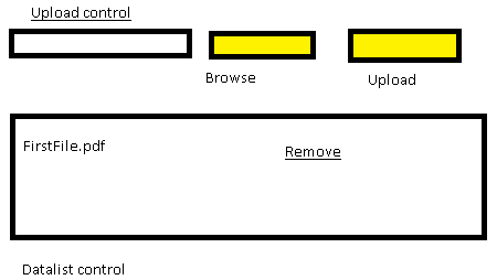 In Template I need asp.net file uload control to upload the file and datlist to show the uploaded file.