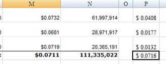 How can I access the 111,335,022 if it is in the footer of a grouped column while performing this calculation at runtime and come up with the 0.0716 instead of the 0.0711 which is a straight average?