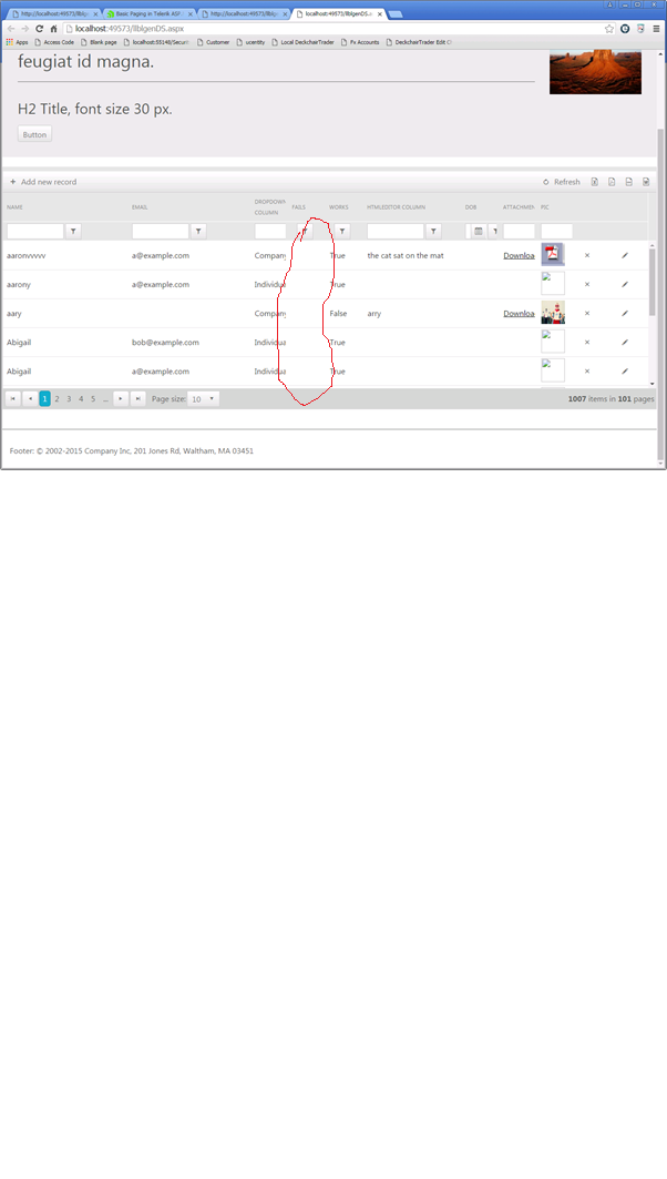 I have a bit field in sql server (all values populated). I am binding to radgrid with a datasource (LLBLGenProDataSource2) using GridCheckBoxColumn.