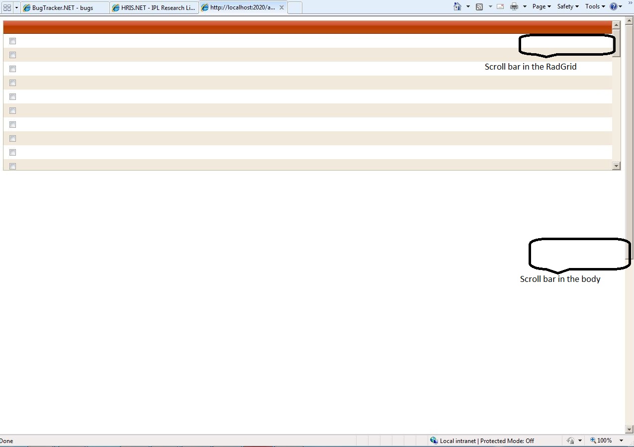 When i use GridClientSelectColumn in a RadGrid and set it to allow scroll, it will get a scroll bar for the outer body.