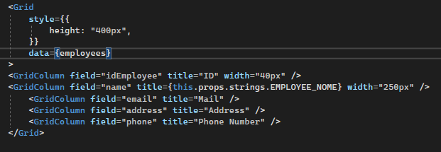 Hi all, i have the attached grid, in the title of the second column i wanna put a translated text that i pass to the page via props, if i put that text variable in another item (as <h1/>) the text is rendered correctly, when i put it in column title it gave me the error '"Cannot read properties of undefined (reading '''strings')".