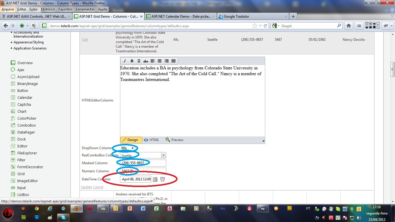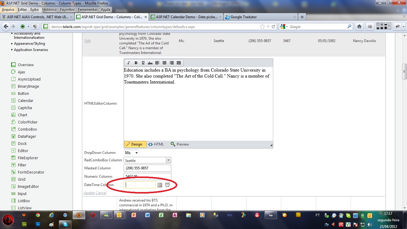 The lower image is an example that you reported, I could not understand what the code that makes this event. How you guys managed to leave the column blank DataTimeColumn, if I do not select a specific date?