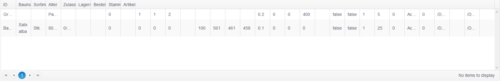 @(Html.Kendo().Grid<LFG.Model.Domain.ArticleGroup>(Model.ArticleGroups) .Name("groupsGrid") .Columns(columns => { columns.Bound(o => o.ID); columns.Bound(o => o.GroupKey); columns.Bound(o => o.Description); }) .Pageable() .Sortable() .Scrollable() .Selectable() .DataSource(dataSource => dataSource .Ajax() .PageSize(LFG.Web.Constants.GridPageSize) .Events(events => events.Error("grid_error_handler")) .Model(model => { model.Id(p => p.ID); }) .ServerOperation(false) ) .Events(e => e.Change("onRowSelect")) )@(Html.Kendo().Grid<LFG.Model.Domain.Article>() .Name("articlesGrid") .Columns(columns => { columns.Bound(o => o.ID); columns.Bound(o => o.Description); columns.Bound(o => o.ProductLine); columns.Bound(o => o.Age); columns.Bound(o => o.Approval); columns.Bound(o => o.Stockpile); columns.Bound(o => o.Ordered); columns.Bound(o => o.Certificate); columns.Bound(o => o.ArtNr); }) .Pageable() .Sortable() .Scrollable() .Selectable() .DataSource(dataSource => dataSource .Server() .PageSize(LFG.Web.Constants.GridPageSize) .Model(model => { model.Id(p => p.ID); }) ) )function onRowSelect(e) { var row = this.select(); var id = row[0].childNodes[0].textContent; console.log("RowSelect - ID: " + id); var grid = $("#articlesGrid"); if (grid) { grid.kendoGrid({ dataSource: { type: "json", transport: { read: "/Shared/GetArticlesByGroup?id=" + id } } }); grid.data("kendoGrid").dataSource.read(); } }KR