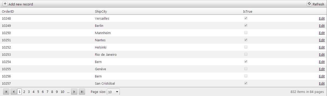 But this check box appears editable, I can uncheck/ check it in the Grid. But I want this column to be read Only. The grid should show checked/unchecked as per the data but should not allow to edit this checkbox. When I try to make the enable property to false, all the records a show checked, which is incorrect :(